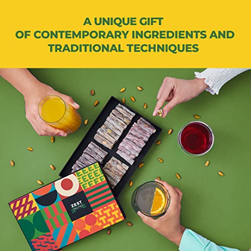Zest Delites Gourmet Vegan Food Gift Box - Turkish Delight Candy Box, Fruit Ingredients; Orange, Vanilla, Pomegranate, Black Mulberry and Pistachio Nuts, Birthday Gift for Her & Him, Soft Candy Snack Box, Get Well - Festive Season Gift, Handmade in Copper